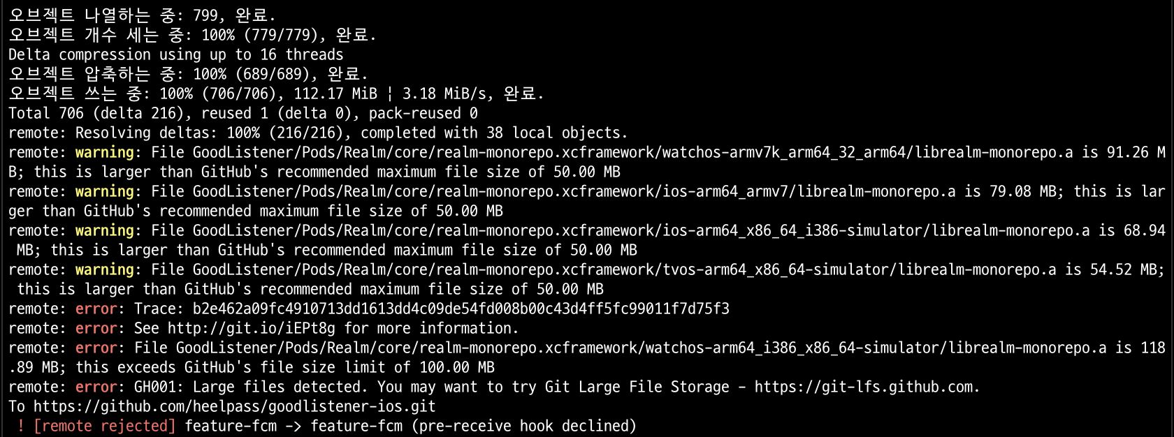 저는 Project/Pods/Realm/Core/realm-monorepo.xcframework/watchos-arm64_i386_x86_64-simulator/librealm0monorepo.a 파일 하나만 100MB를 초과했기에 하나만 트랙킹했습니다.
