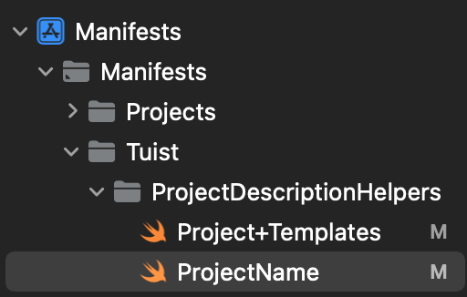 ProjectDescriptionHelpers 안에 ProjectName이라는 Swift파일을 생성 후 아래 내용을 추가해줍니다.